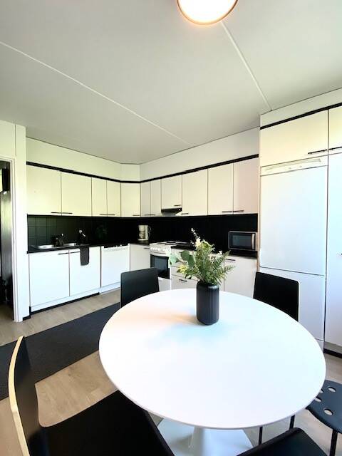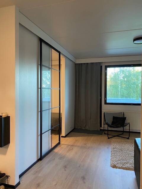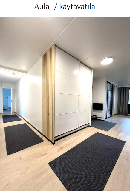 Huoneistossamme on neljä makuuhuonetta, keittiö, olohuone, parveke, kaksi wc:tä, kylpyhuone ja sauna.